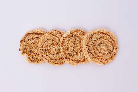 Rice cracker with coconut palm sugar on white