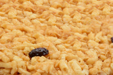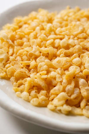 Macro close up of inflated wheat cereal, selective focus