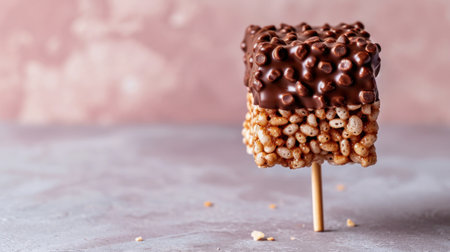 Crispy rice bars on color background
