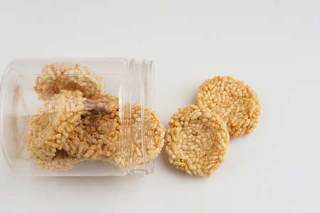 Rengginang or traditional rice cracker, Indonesian traditional snacks made from glutinous rice, savory and crunchy.
