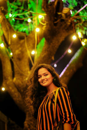 Portrait of a beautiful young woman with bokeh background.