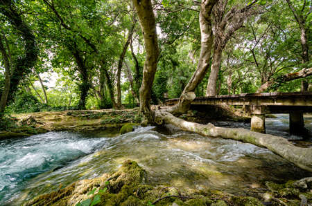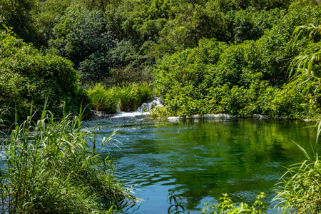 Krka River in the spring, the Mediterranean landscape. Croatia - Europe