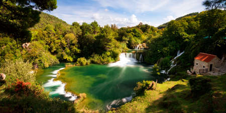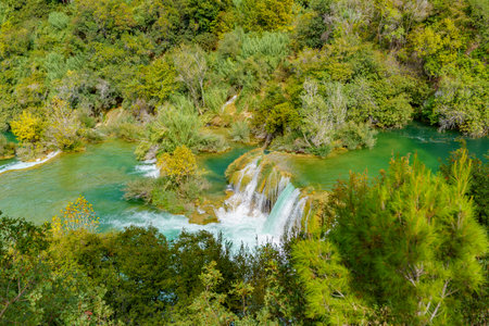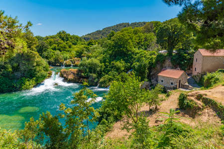 Magical mediterranean touristic and hiking place with Krka waterfalls, near Sibenik resort, Dalmatia, Croatia, Europe