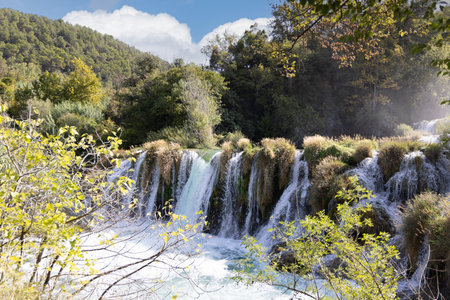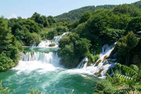 Beautiful waterfalls in National Park Krka, Croatia on a sunny summer day.