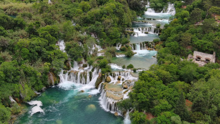 Aerial view of the Krka waterfalls in Croatia, Europe