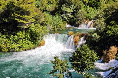 Krka Waterfalls with turquoise water