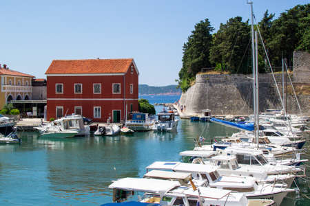 Zadar, Croatia; 07/17/2019: Lucica Fosa (Zadar harbour) full of boats and walls of the city in the old town of Zadar