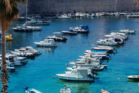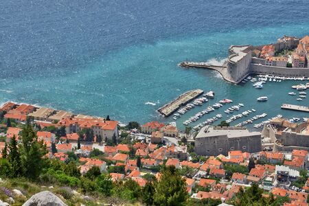 The boat dock near the old city of Dubrovnik, Croatia. The harbor, a marina, near the ancient city.