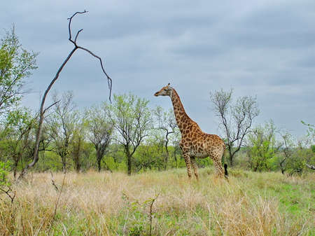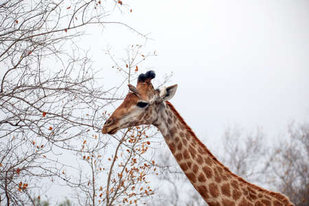Beautiful tall majestic giraffe in the nature on safari in Kruger National Park in South Africa.