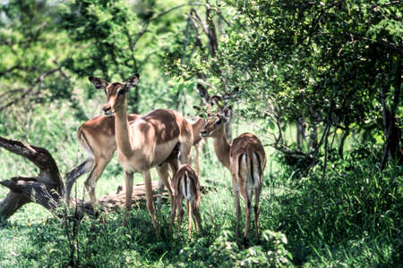 Animals wildlife. Impala male guards a group of females.