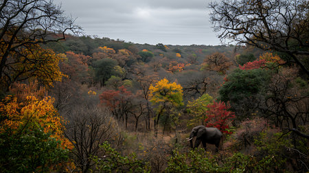 Elephants in the forest in autumn, Chobe National Park, Botswana
