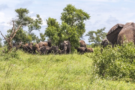 Elephant family hiding in shade in Kruger Park