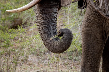 Trunk of grazing Elephant in the Kruger National Park, South Africa.