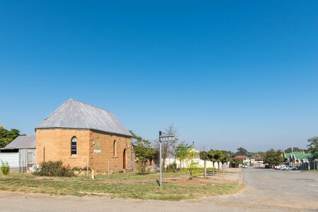 SENEKAL, SOUTH AFRICA, MAY 1, 2019: A street scene, with the Senekal Free Church building, in Senekal in the Free State Province