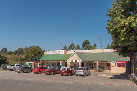 BADPLAAS, SOUTH AFRICA - MAY 2, 2019: A street scene, with businesses, people and vehicles, in Badplaas in the Mpumalanga Province