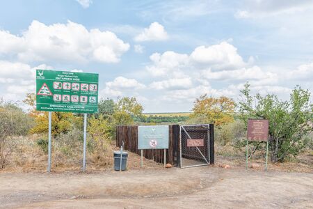 Sign boards at the entrance of Jagersfontein, a diamond mining town in the Free State Province of South Africa
