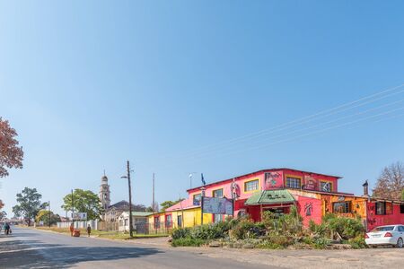WINBURG, SOUTH AFRICA - MAY 1, 2019: A street scene, with businesses, people and vehicles, in Winburg, a small town in the Free State Province of South Africa