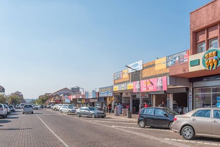 MIDDELBURG, SOUTH AFRICA - MAY 22, 2019: A street scene, with businesses, people and vehicles, in Middelburg in Mpumalanga