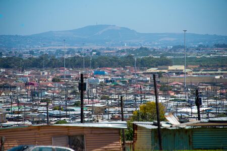 distant view of housing in an informal african shanty town township