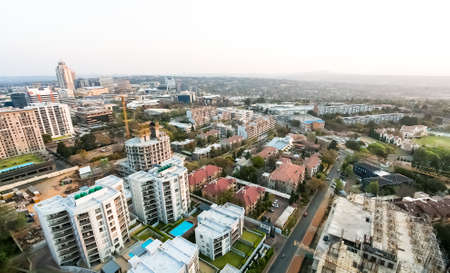 Johannesburg, South Africa - August 28 2013: High Angle view of Sandton Central Business District buildings and roads
