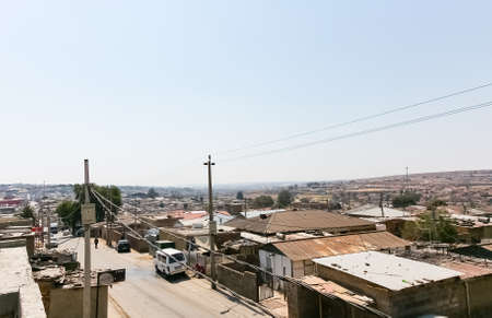 Johannesburg, South Africa - August 29 2013: High Angle rooftop view of low income houses in Alexandra township Johannesburg South Africa