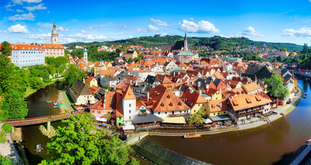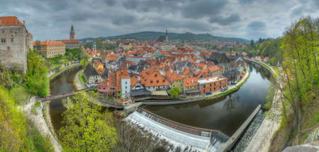 Panorama Aerial View of Cesky Krumlov, the UNESCO world heritage site, Czech Republic