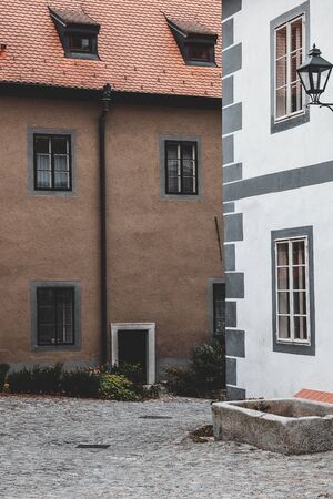 Old streets with beautiful buildings in Cesky Krumlov, famous touristic historical town in Czech Republic