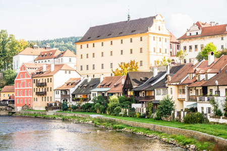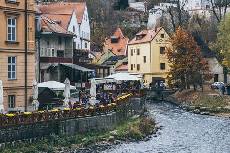 CESKY KRUMLOV, CZECH REPUBLIC - OCTOBER, 2019: RIver and old buildings of Cesky Krumlov town