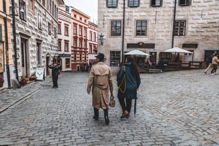 Czech Republic - APRIL 16,2019. Lovers at State Castle and Chateau Český Krumlov Czech Republic.
