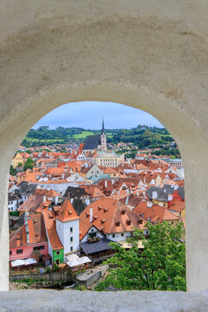 View of Cesky Krumlov from a window in Bohemia, Czech Republic