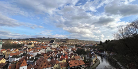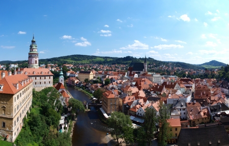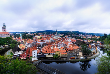 Panorama of the old town of Cesky Krumlov, Czech Republic