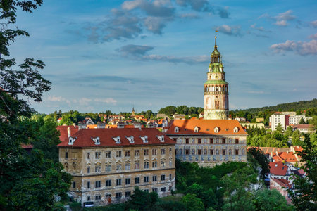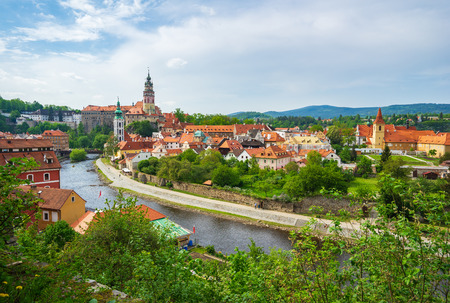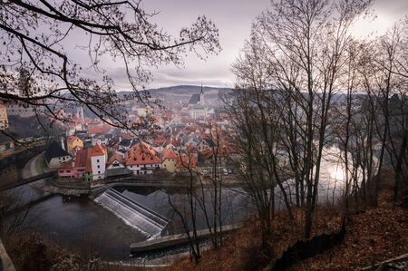 Nice view of the historic center of Cesky Krumlov, Czech Republic
