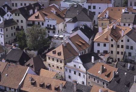 Overhead shot of a part of the town of Ceske Krumlov in the Czech Republic