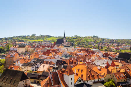 saint vitus cathedral of cesky krumlov viewed from the main castle tower. Famous tourist attraction in Czech Republic