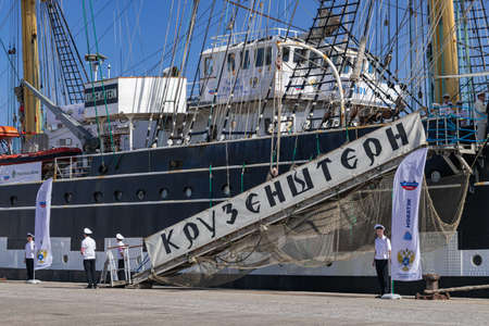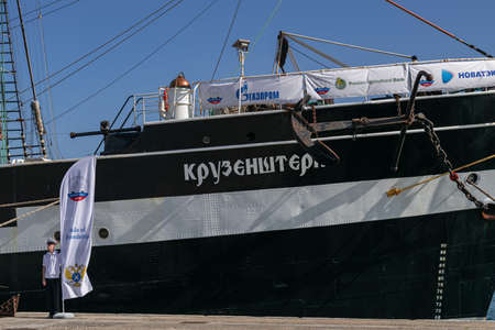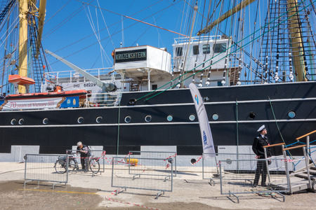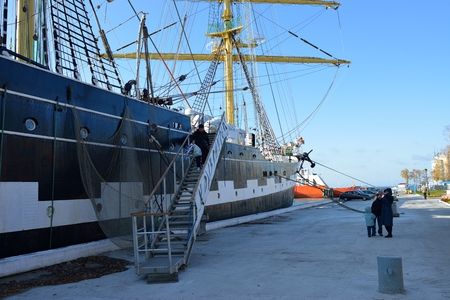 KERCH, CRIMEA, RUSSIA - MAY 05: Entrance to sailboat Kruzenstern per day free entrance in port of Kerch on May 05, 2015 in Kerch, Crimea, Russia