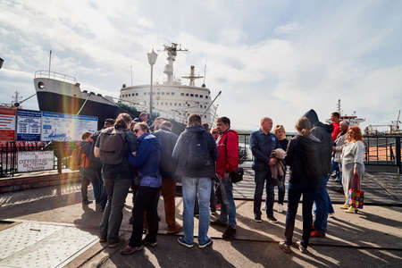 Murmansk, Russia - June 21, 2019: Group of people during an excursion to the ship historical Museum. The first nuclear powered icebreaker Lenin in Murmansk in Russia