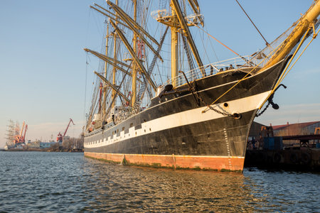 Gdynia, Poland - October 8, 2022 - Dar Młodzieży (Polish: Gift of the Youth) sail training ship, full-rigged ship from 1982 in Port of Gdynia.