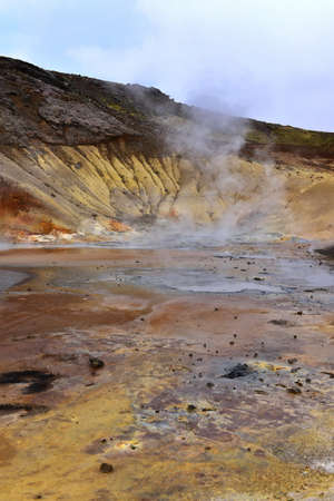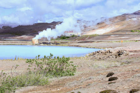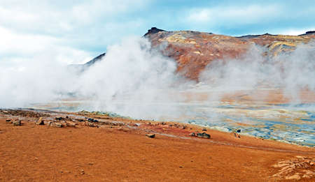 Geothermal landscape near Reykjahlid and Lake Myvatn in the north of Iceland.