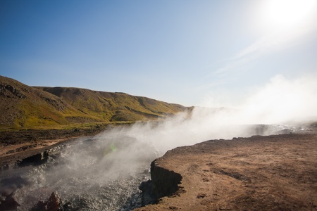 Icelandic geyser vapors and picturesque nature.
