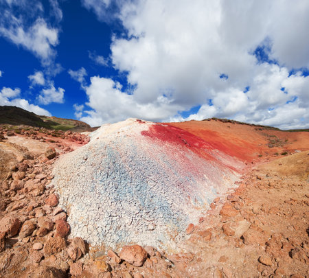 Dramatic volcanic landscape with vibrant colors reveals natures raw power