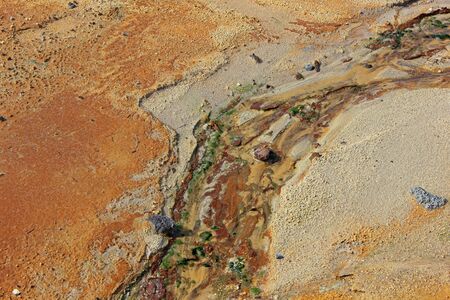 The view of colorful ground at Namafjall Hverir geothermal area near Lake Myvatn, Iceland