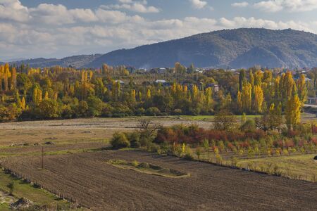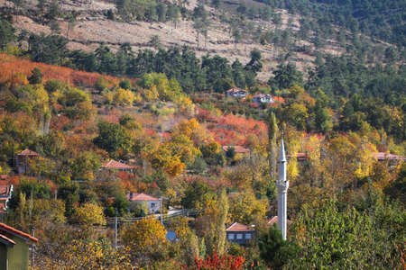 Colorful autumn landscape in the mountain village. Turkey.