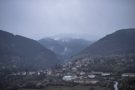 Panorama with village of Gega and Ograzhden Mountain, Blagoevgrad Region, Bulgaria