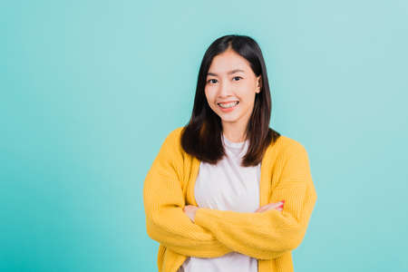 Casual asian girl on white background smiling face with relax tee shirt