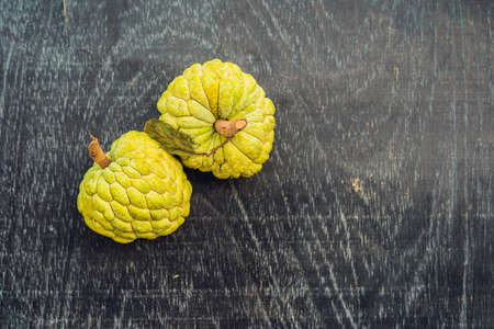 Soursop, Guanabana, Custard Apple, Annona muricata on wooden background