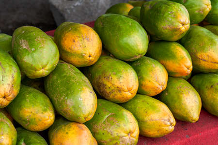Fresh papaya at the market. Fruit organic concept