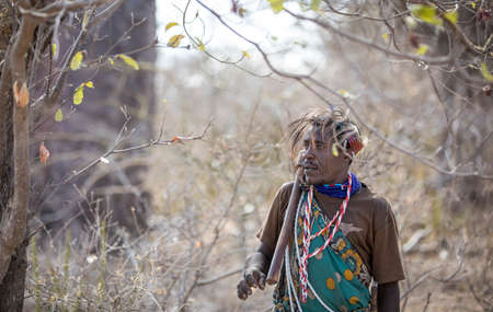 Lake Eyasi, Tanzania, 11th September 2019: Hadzabe man in a cave