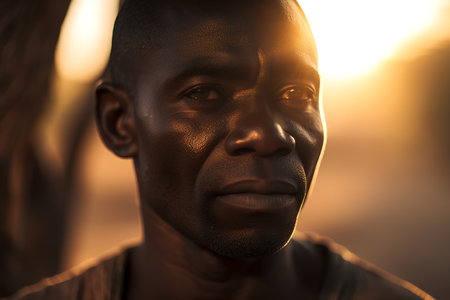 Close-up portrait of a young African man in the sunset light.