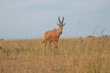 antelope were walking in grassland at Murchison falls national park , which is the biggest park in Uganda