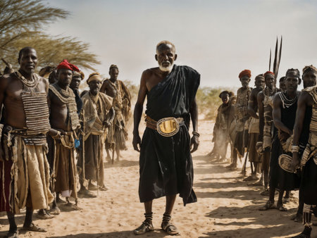 photo of african old people tribal warriors with armor, generative AI